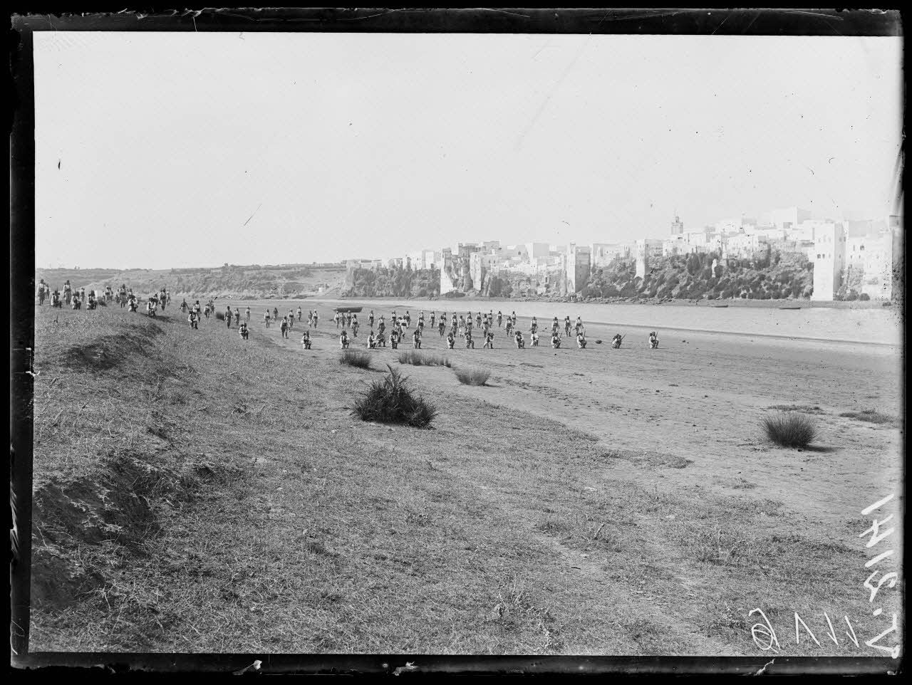 Azemmour (Maroc). Passage du lac par les troupes marocaines. Vue générale.