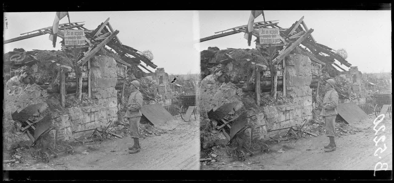 Il prend par ailleurs des vues de la réparation d'un pont par le génie, de la réparation d'une rue par des Ecossais, de plusieurs cimetières et chapelles allemands, des tombes de deux aviateurs français, l'adjudant Gibaud et le sous-lieutenant Le Nivel. A Suzoy (Oise), il visite une école transformée en casino par l'ennemi pendant l'occupation et décorée de peintures.