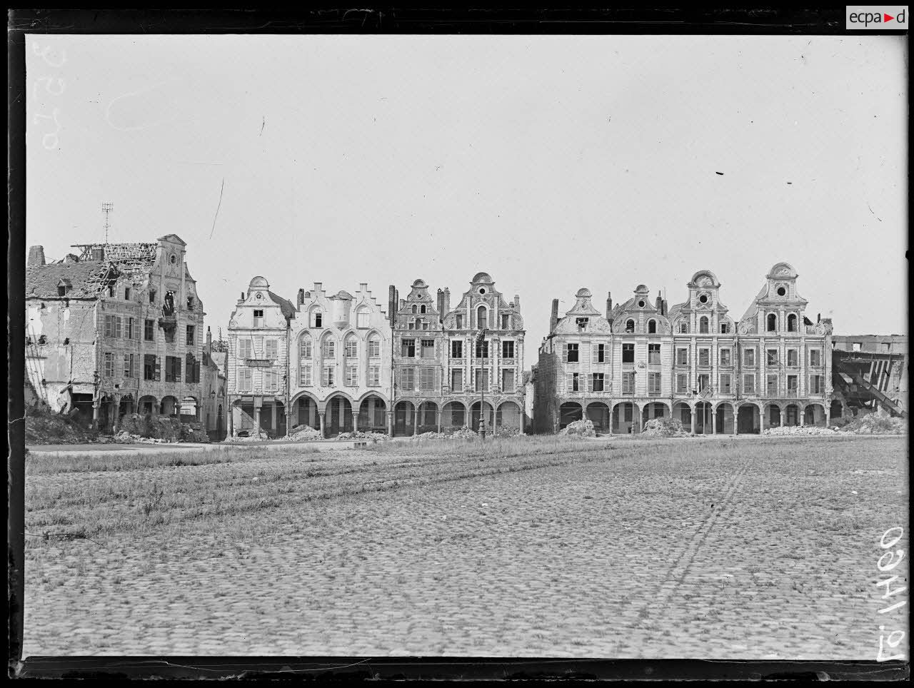 Malgré son statut de ville ouverte, qui est censé la protéger des combats, Arras n’est pas épargnée par les bombardements allemands. Intenses à partir d’octobre, ces derniers endommagent d’important bâtiments et monuments : l’hôtel de ville est détruit le 7 octobre 1914, le beffroi brûle le 21 octobre. La cathédrale et le palais Saint-Vaast subissent le même sort en juillet 1915. Les destructions perdureront jusqu’à la fin du conflit. De nombreux villages des alentours font également les frais du feu allemand. Certains sont littéralement rayés de la carte, comme Beaurains en octobre 1914.