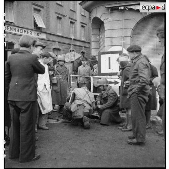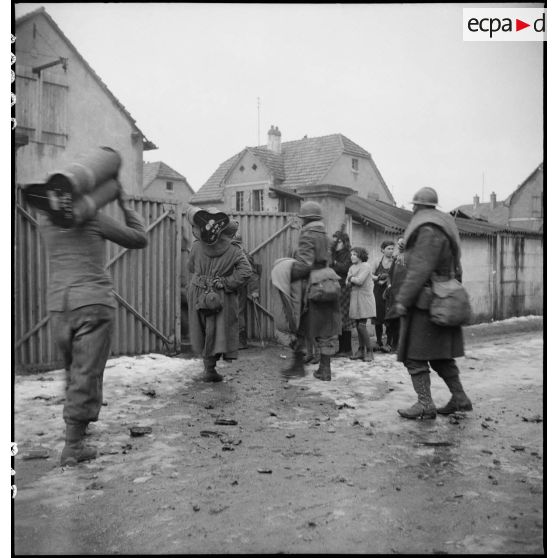 Le poste émetteur portatif est regardé avec curiosité par les habitants de Cernay.