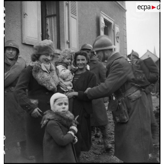 Le commandant Diebold félicite ses soldats dans Cernay.
