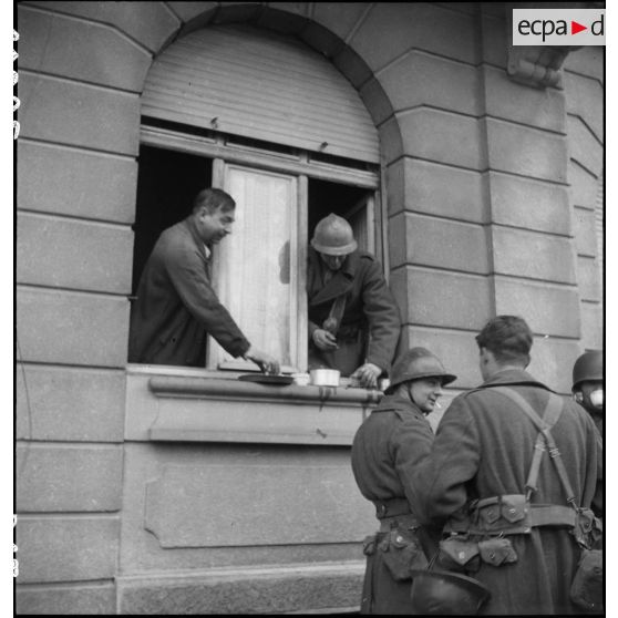 Le comandant Diebold du 3e bataillon du 6e RTM (Régiment de tirailleurs marocains) rentre le premier à Cernay après de durs combats.