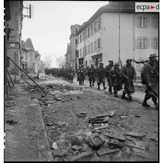 Passage du 3e bataillon du 6e RTM dans Cernay.
