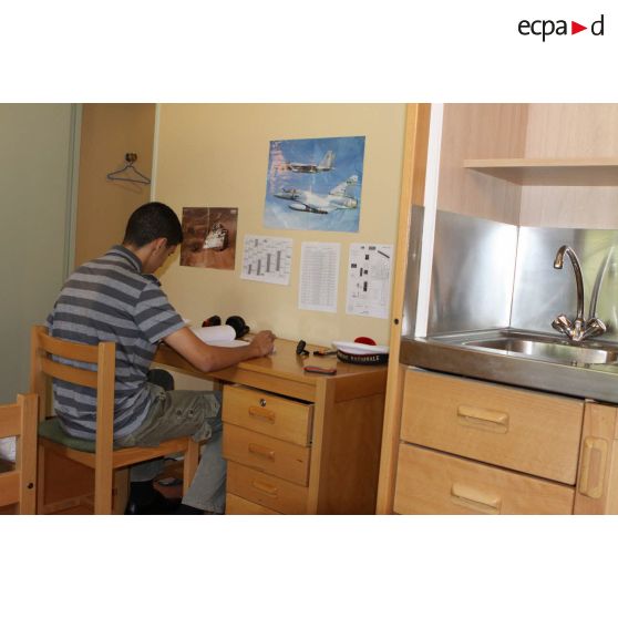 Lycéen de l'internat d'excellence de Sourdun à l'étude dans sa chambre.