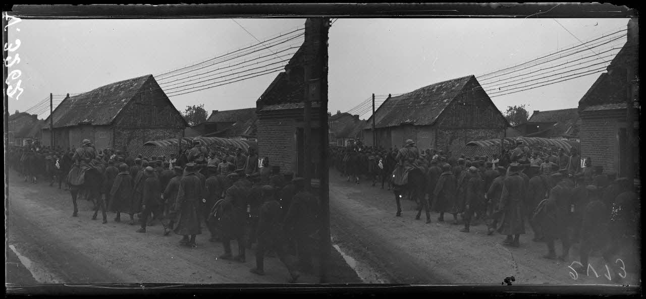 Des prisonniers allemands traversent le village de Beaulieu-les-Fontaines le 20 octobre 1918.