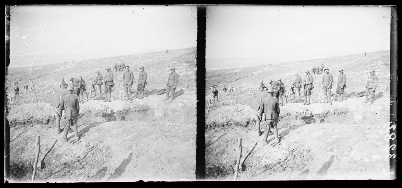 - au ravin du Helly, des soldats marocains (unité de rattachement non identifiée) posant des fils de fer barbelés et creusant des boyaux (SPA 67 L 3282/3284/3288/3289), un soldat marocain lançant une grenade (SPA 67 L 3283) ; - devant Beaumont-en-Verdunois, une vue sur les lignes allemandes (SPA 67 L 3291), une route de rondins (SPA 67 L 3297), les lignes françaises (SPA 67 L 3308) ;