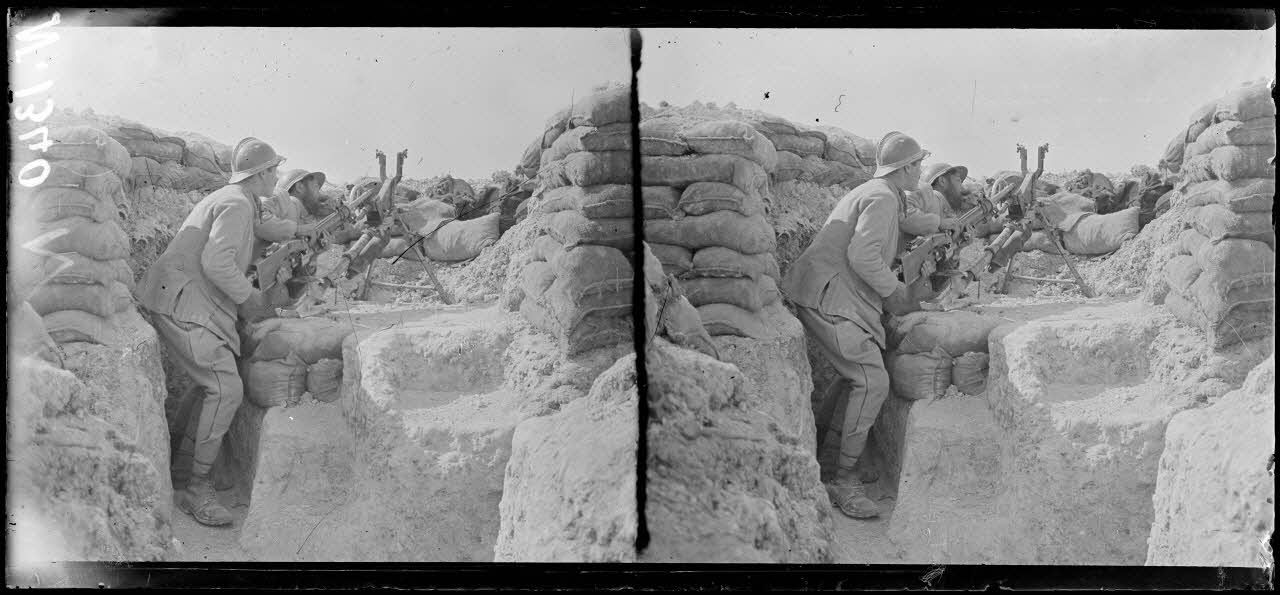 Beauséjour (Marne). Mise en position d'une mitrailleuse. [légende d'origine]
