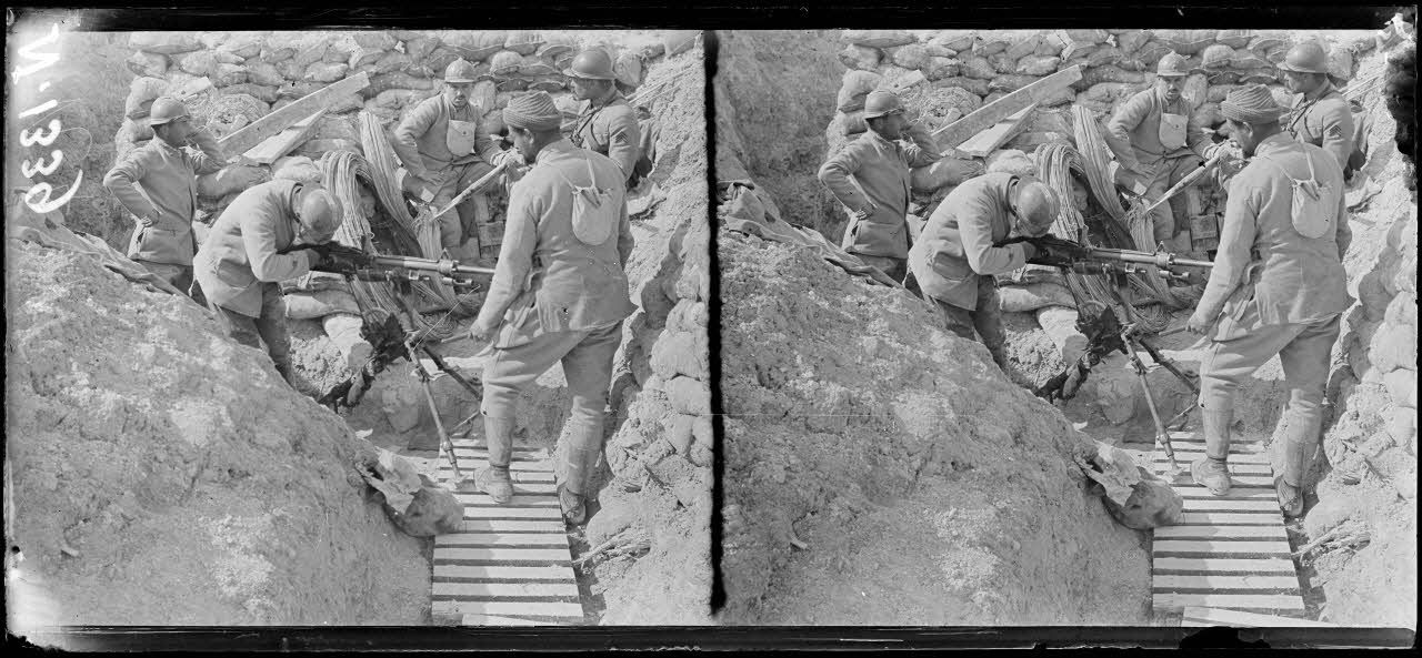 Beauséjour (Marne). Mise en position d'une mitrailleuse.