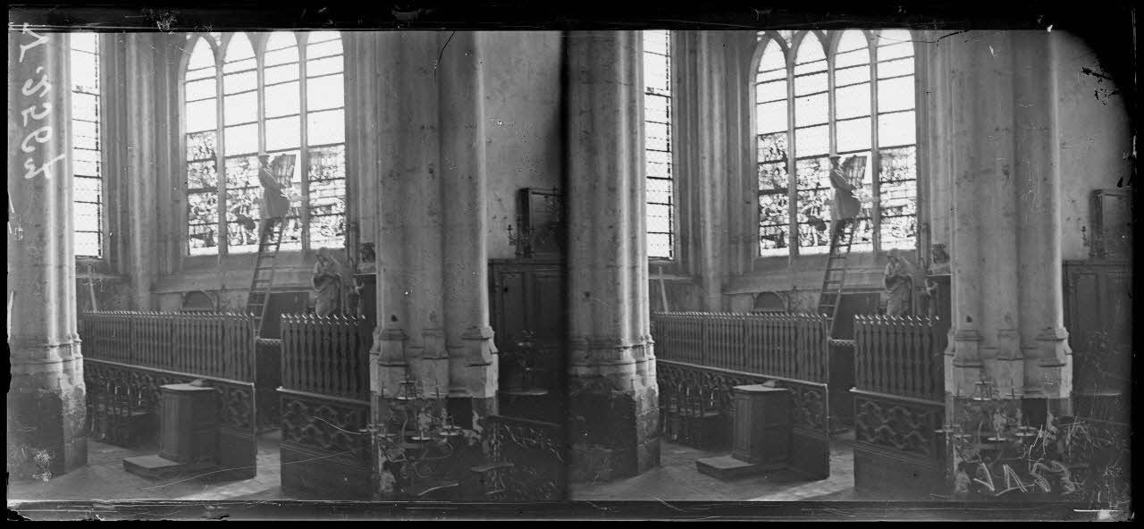 - Dans l'église Saint-Etienne de Beauvais (Oise, 03/04/1918, V 2567 à V 2572) devant l'avancée allemande, les autorités effectuent l'évacuation des vitraux, qui sont alors emballés dans des caisses.