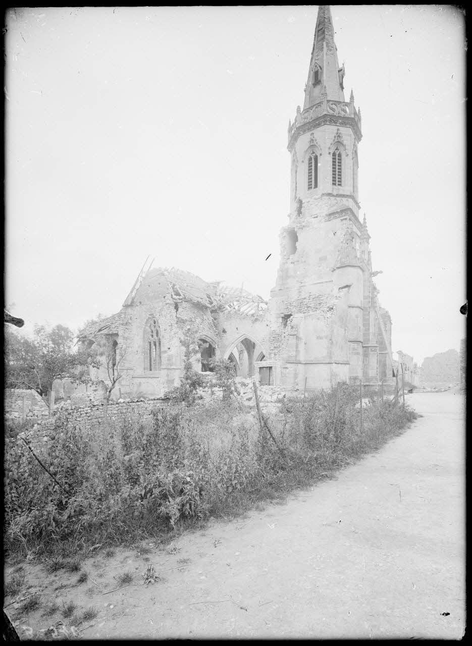 Neuvilly (Meuse). Trous d’obus (église). Combats du 7 octobre 1914 .