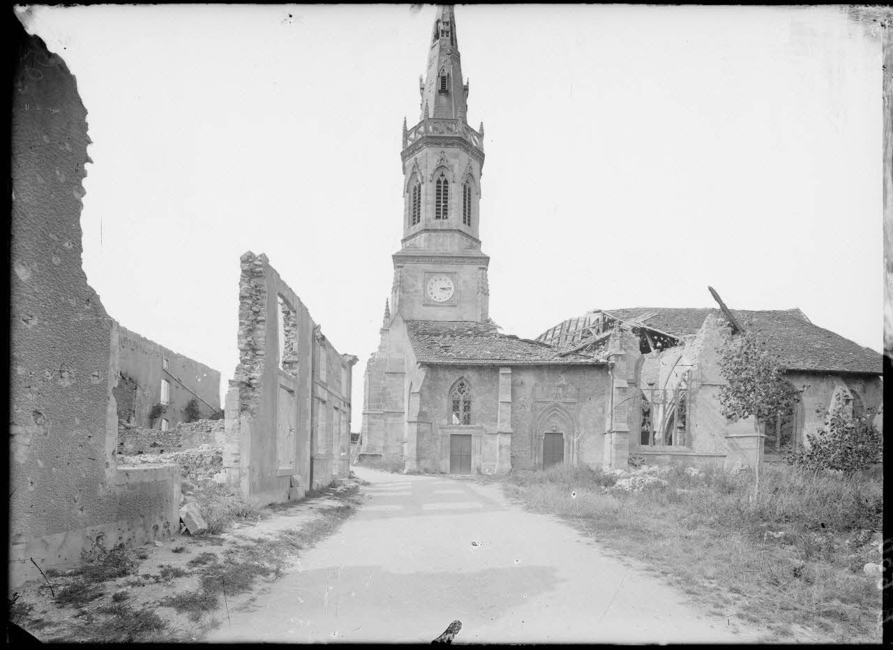 Maurupt-le-Montois, Marne, ruines des combats de septembre 1914. L'église en ruines.