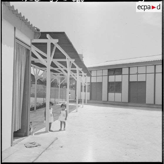 Belcourt. La première Maison de la femme d'Alger. Deux petites filles dans la cour.