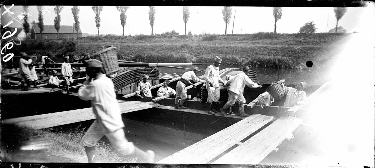 Note : voir films référence 14.18 A 1164 (exercice de franchissement de l'Yser et visite du roi Albert Ier et du général Anthoine), 4.18 A 2, 14.18 A 333, 14.18 A 270 (Elverdinghe, Reninghe), 14.18 B 258 (camp malgache).