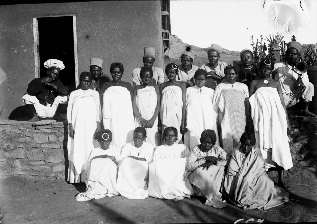 Portrait de groupe d'hommes et de femmes malgaches au village de Besoa.