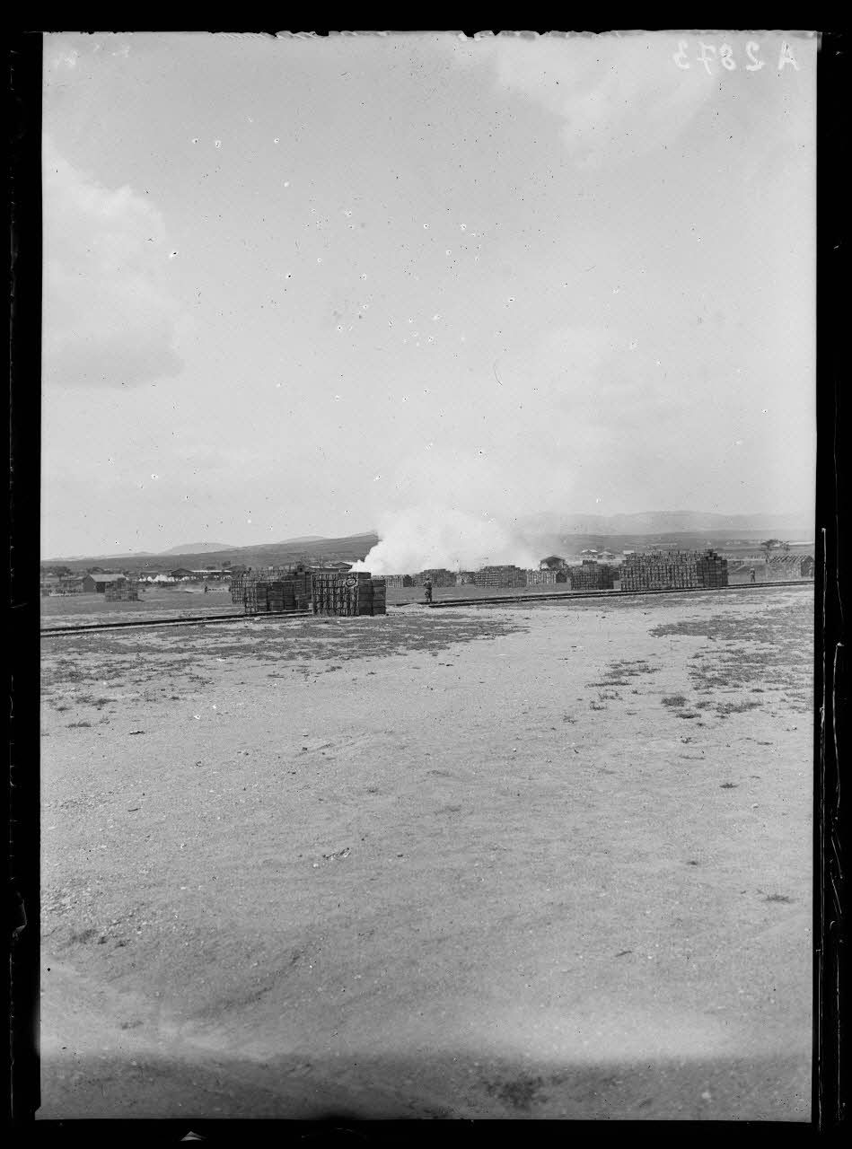 Betchinar près de Salonique. Incendie du dépôt de munitions et du dépôt de l'intendance (24.6.18). [légende d'origine]