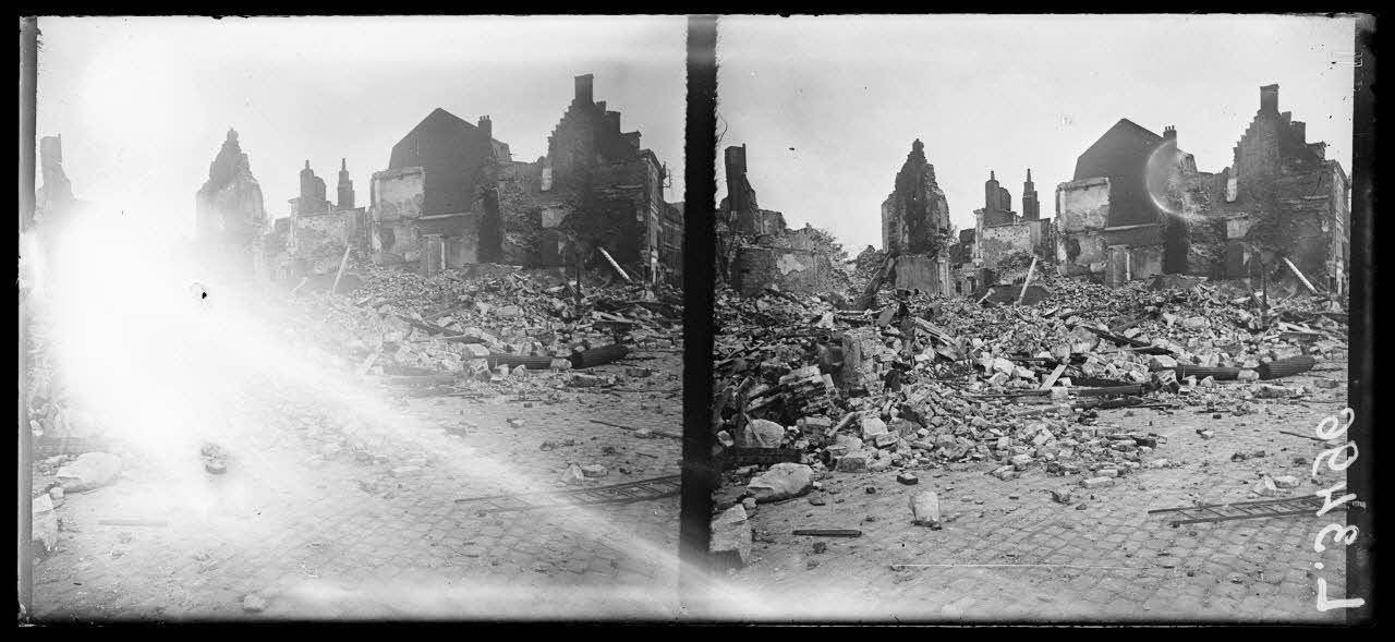 Les effets des bombardements allemands sur Béthune et Grandvilliers (Oise).