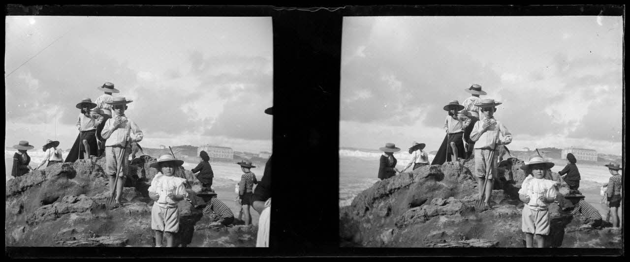 Cet ensemble de plaques de verre stéréoscopiques, à caractère familial et touristique, porte sur les activités de membres de la famille du général Albert d'Amade (1856-1941) : manifestation tauromachique à Fontarabie (pays basque espagnol), scènes maritimes, portraits de famille, bains de mer à Biarritz, etc. Etant donné la rareté des informations documentaires associées à ces photographies, leur localisation précise n'a pu être établie pour la plupart d'entre elles.