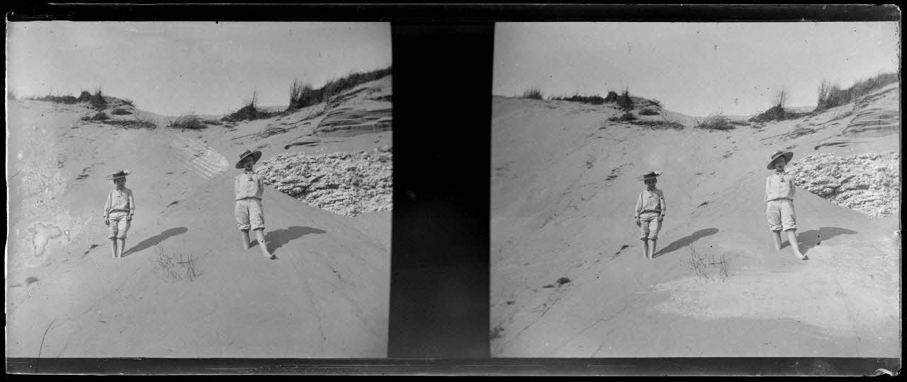 Cet ensemble de plaques de verre stéréoscopiques, à caractère familial et touristique, porte sur les activités de membres de la famille du général Albert d'Amade (1856-1941) : manifestation tauromachique à Fontarabie (pays basque espagnol), scènes maritimes, portraits de famille, bains de mer à Biarritz, etc. Etant donné la rareté des informations documentaires associées à ces photographies, leur localisation précise n'a pu être établie pour la plupart d'entre elles.