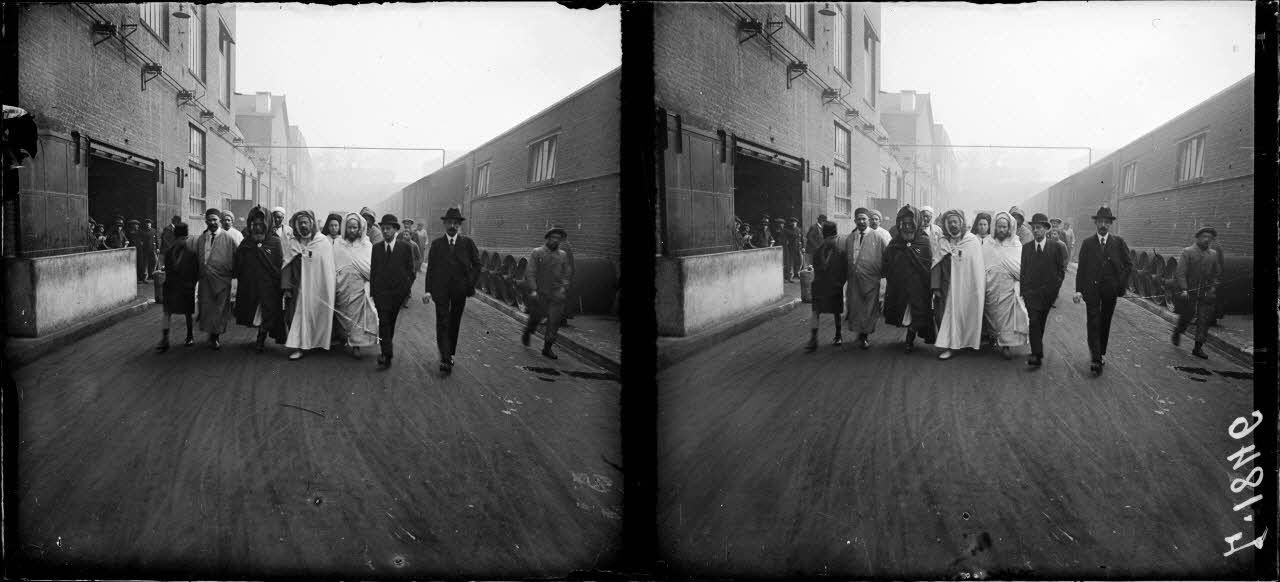 Le reportage présente la mission musulmane en visite à Paris, après son retour de La Mecque (SPA 34 L 1801 à 1860) :