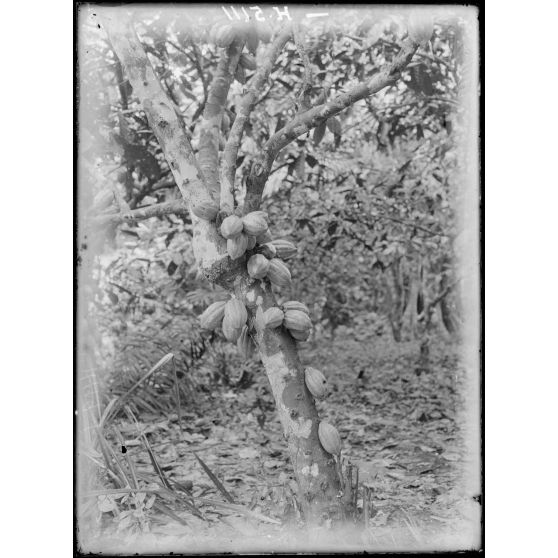 Bipindi, plantation Zenker. Fruits du cacaoyer "Criola rouge".