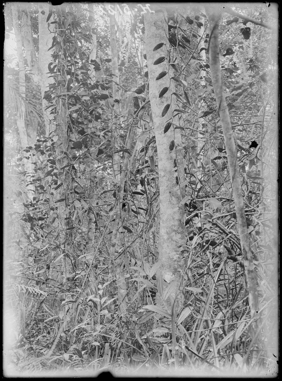 Bipindi, plantation Zenker. Vanilia pandifolia le long d'un gros arbre. [légende d'origine]