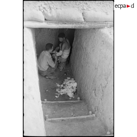 Blessé recevant des soins dans un boyau du camp retranché de Diên Biên Phu.