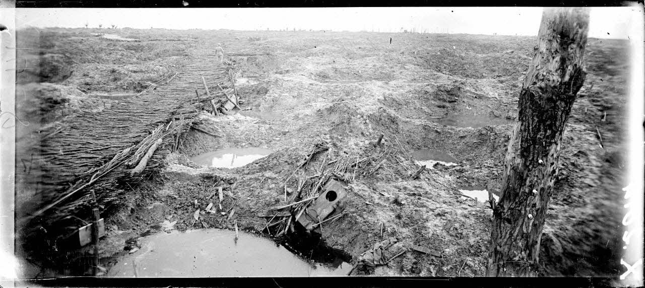 Des anciennes tranchées allemandes détruites par l'artillerie.