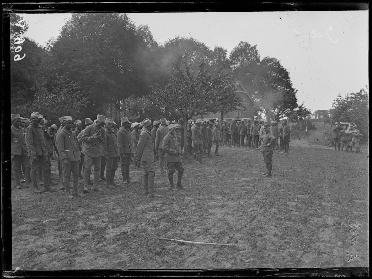 Bois d'Houssoy, près Remaugies. Somme. Rassemblement de sénégalais. [légende d'origine]