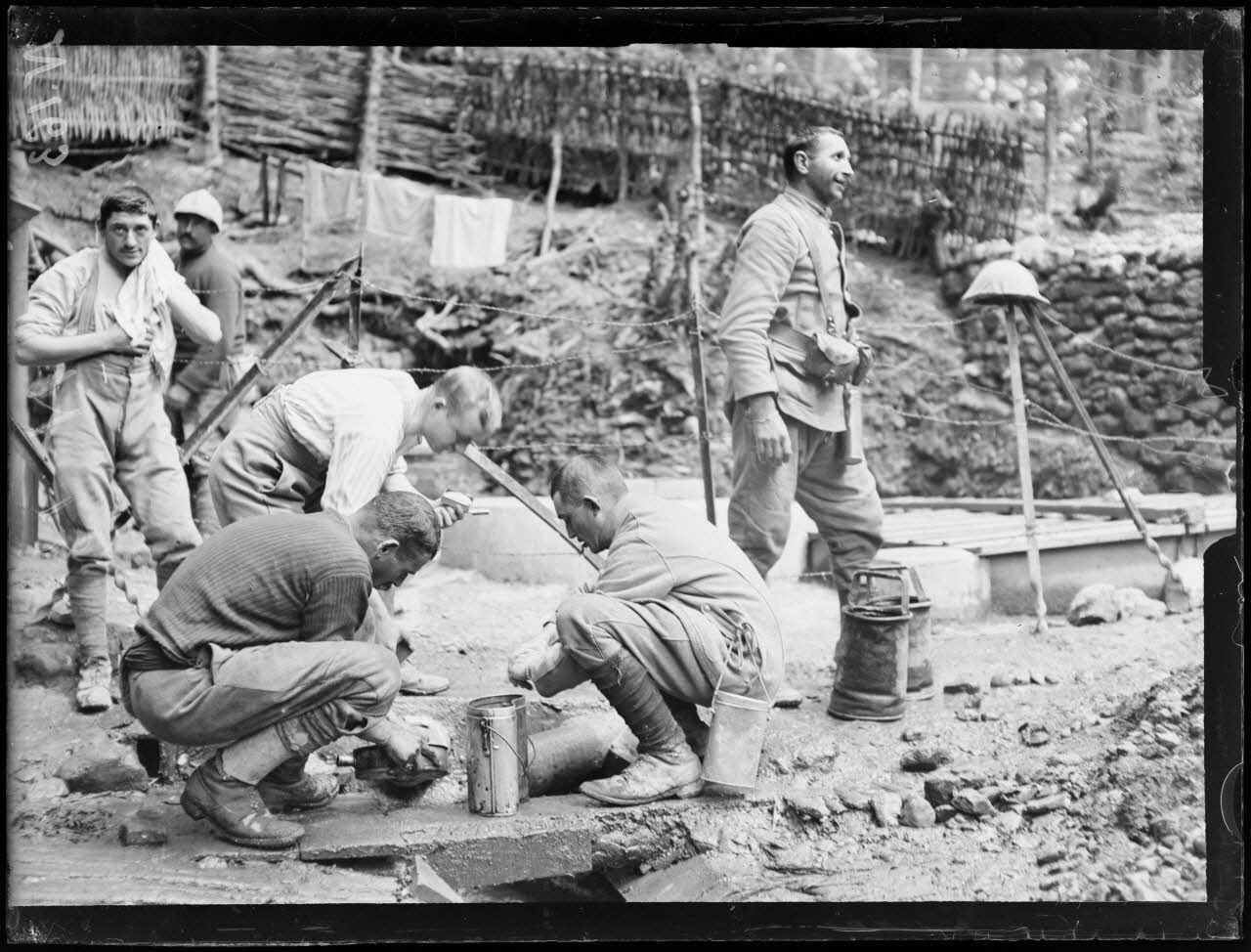 - Dans le bois de Lachalade, les cantonnements et abris de première et seconde ligne acceuillent les soldats, le café, le perruquier, le poste d'air comprimé, l'arrivée de la soupe aux tranchées, l'entrée d'une sape, un poste d'écoute installé dans un cratère d'obus, les lignes allemandes à 10 mètres, la cote 285, le PC du commandant Tissier, le cimetière du Four des Moines, l'ouvrage Garnier installé sur le secteur de la Haute Chevauchée, le PC du 82e régiment d'infanterie installé près de la crête de la Fille Morte, un cours théorique sur le tir contre avion à la mitrailleuse.