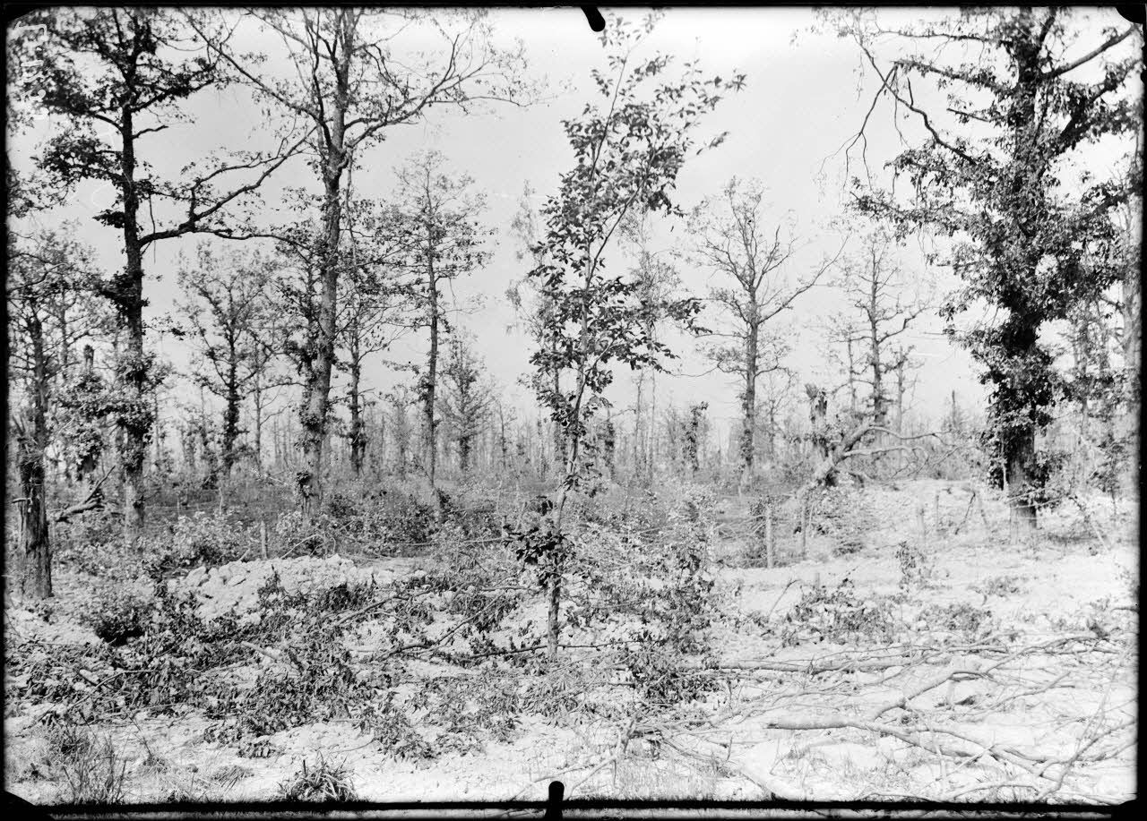 Bois de la Gruerie. Secteur de St Hubert. Le bois ravagé par les obus. [légende d'origine]