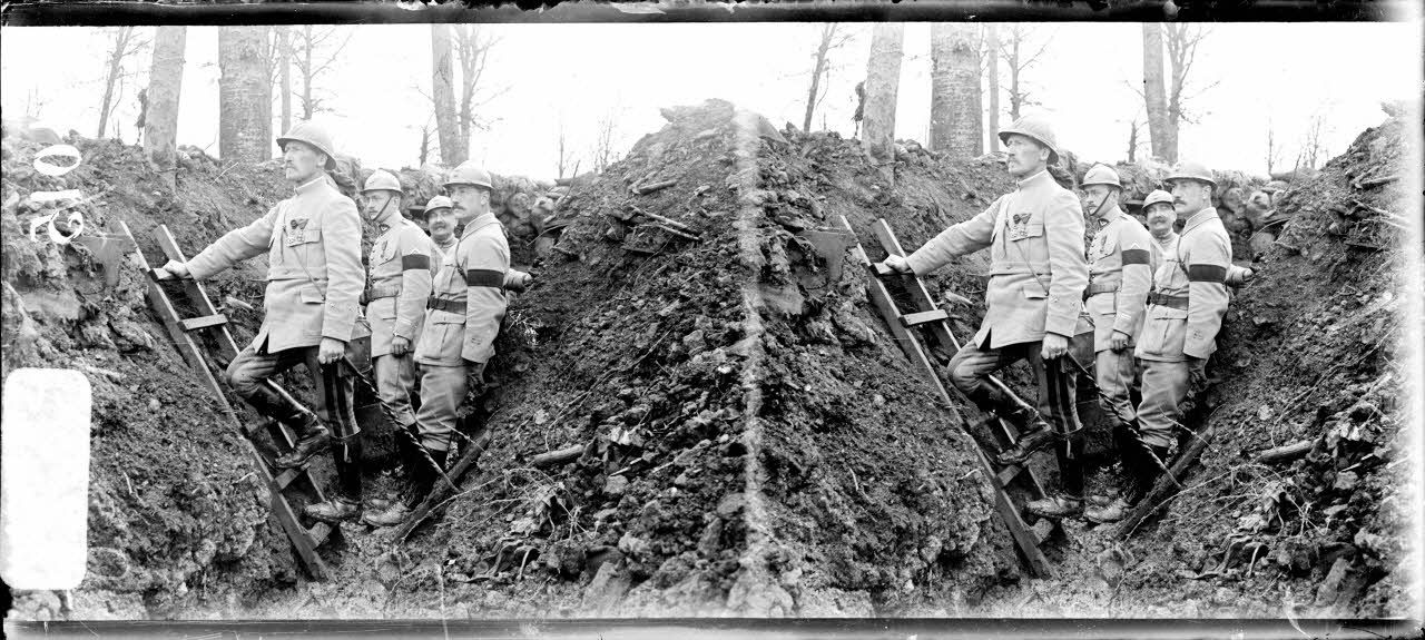 Bois Le Prêtre (Meurthe-et-Moselle). Le Mouchoir. Boyau franco- à 20 mètres des tranchées allemandes. Le général Le Bocq.