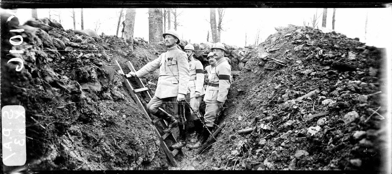 Bois Le Prêtre (Meurthe-et-Moselle). Le Mouchoir. Boyau franco- à 20 mètres des tranchées allemandes. Le général Le Bocq.