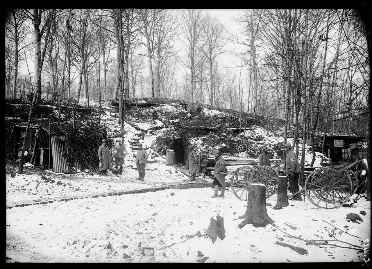 - des vues d'installations diverses dans le Bois-le-Prêtre : un poste de secours au carrefour du Mouchoir, une vue de la tranchée du Mouchoir, la fontaine du Père Hilarion vue des tranchées.