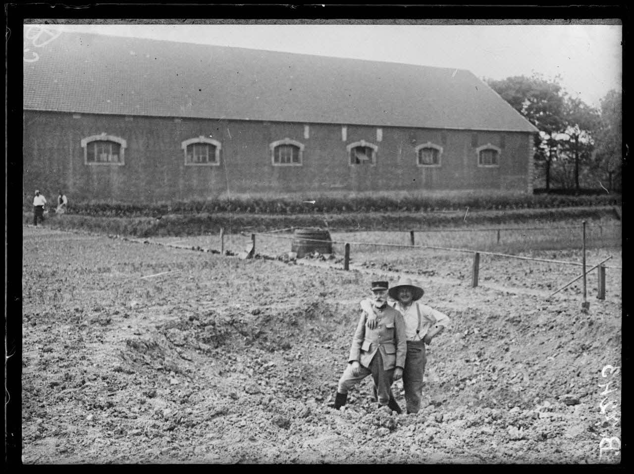 Boulevard Jourdan. Trou d'obus dans le jardin de l'école de dressage.