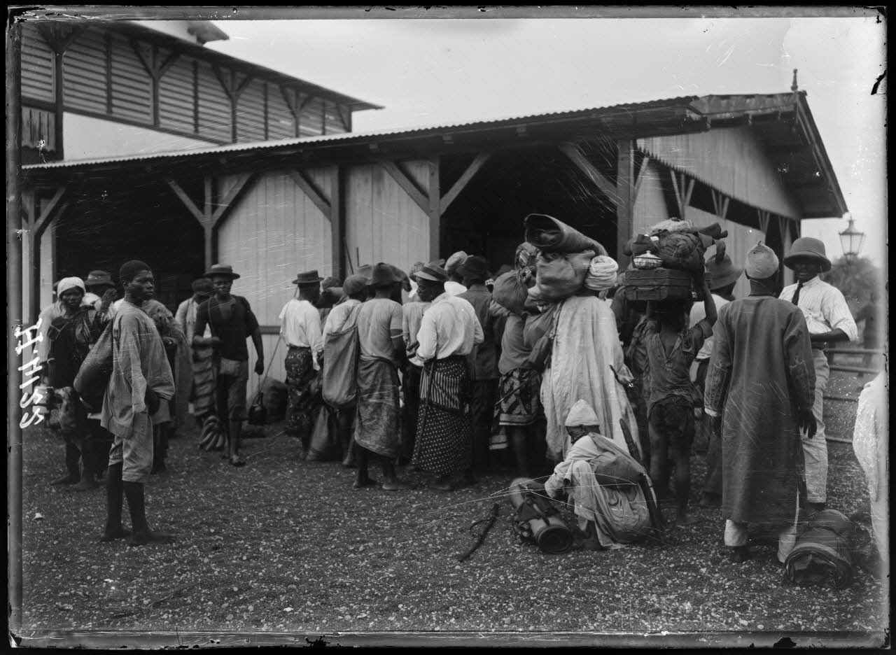 Bonabéri. La gare à l'arrivée d'un train. Sortie des voyageurs. [légende d'origine]