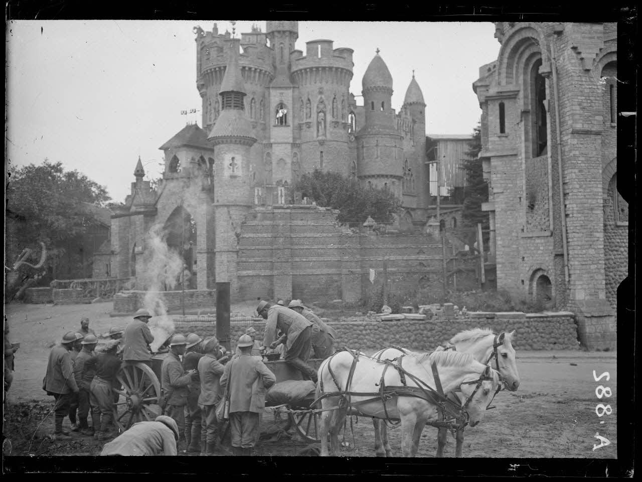 Boulogne la Grasse. Somme. Le château. Au 1e plan, cuisine roulante. [légende d'origine]