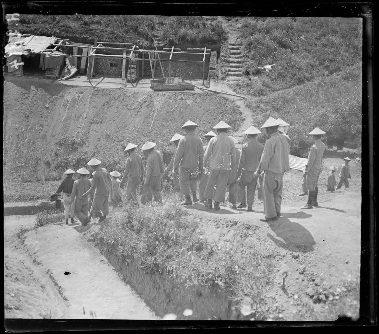 Bounardja. Rassemblement, 4e compagnie, 2e bataillon indo-chinois. Départ en corvée. [légende d'origine]