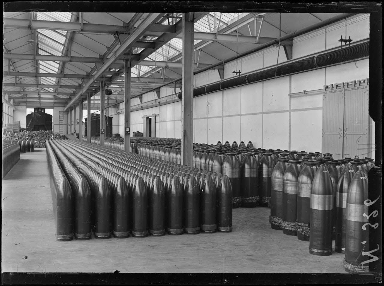 Bourges. Ecole de pyrotechnie. Usine de guerre. Hall aux gros obus. [légende d'origine]