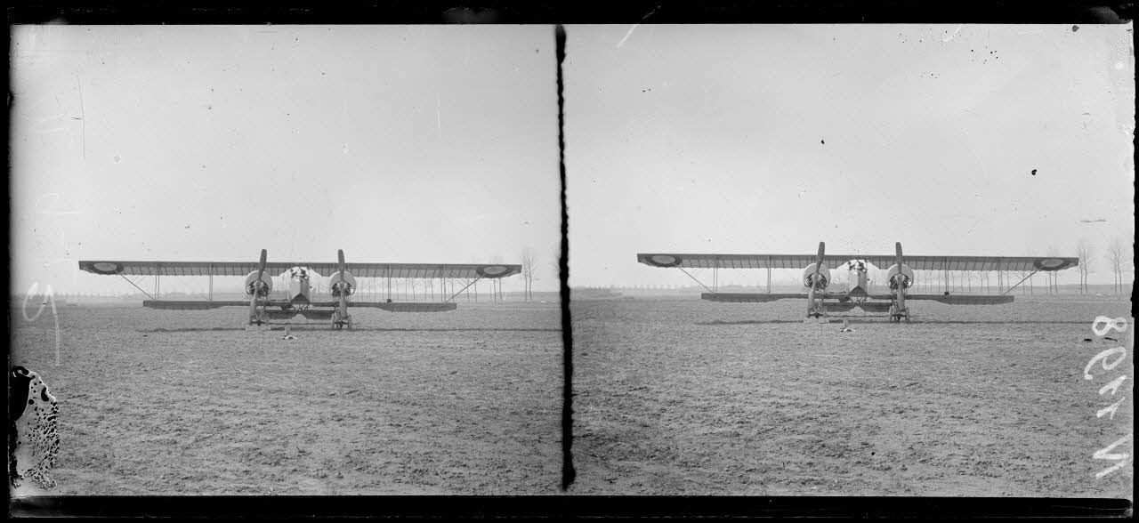 Bouy (Marne). Camp d'aviation. Appareil Farman de reconnaissance; biplace vu de face (6-4-17).