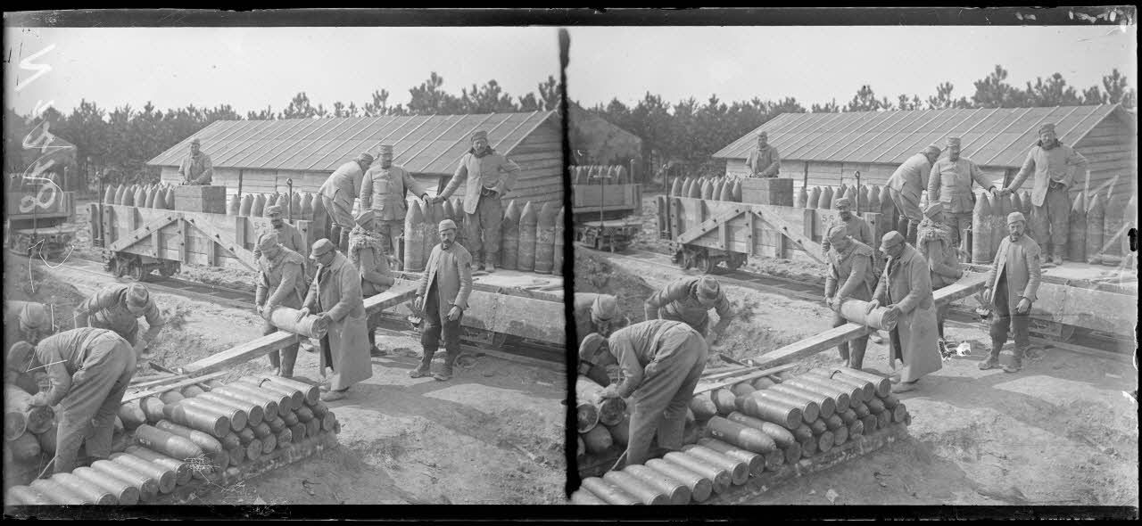 - À Bouy, des munitions, arrivent à la gare et sont emportées en camions ; au dépôt de munitions, des obus de 220 mm arrivent par train sur voie de 0,60 et sont déchargés des wagons pour être entreposés.