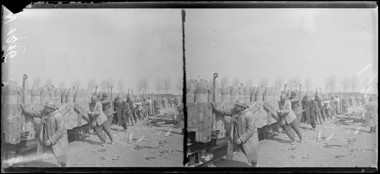 - À Bouy, des munitions, arrivent à la gare et sont emportées en camions ; au dépôt de munitions, des obus de 220 mm arrivent par train sur voie de 0,60 et sont déchargés des wagons pour être entreposés.