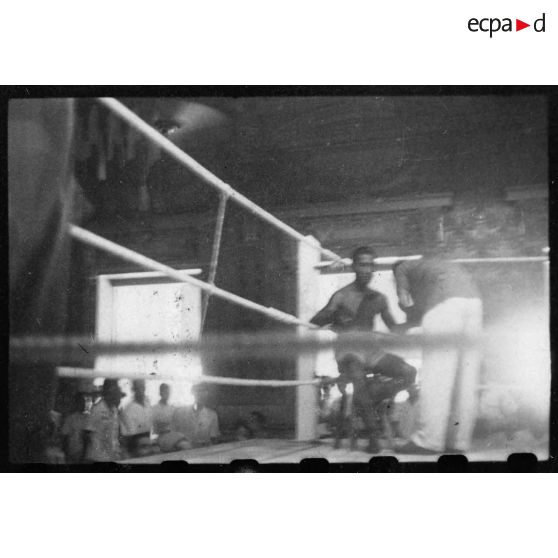 Gala de boxe organisé à Saigon opposant des boxeurs militaires.