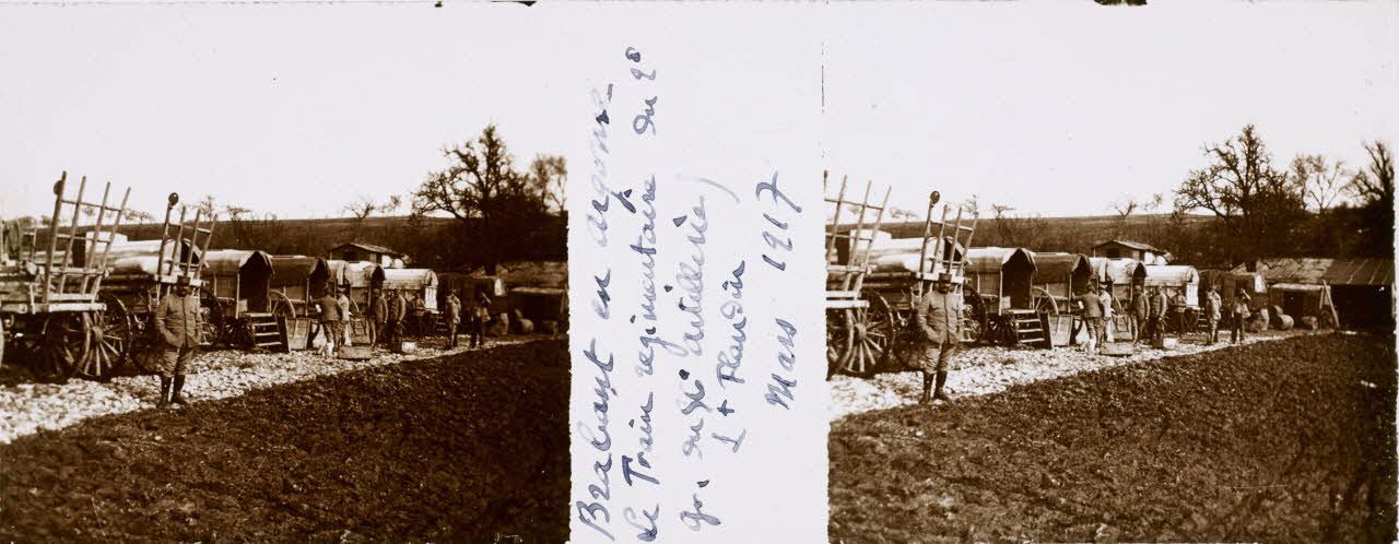 Brabant en Argonne. Le Train régimentaire du 2e groupe du 56e d'artillerie. Lt Flandin. Mars 1917. [légende d'origine]
