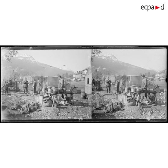 Briançon. La soupe attendant un convoi de camions de la 10e armée.