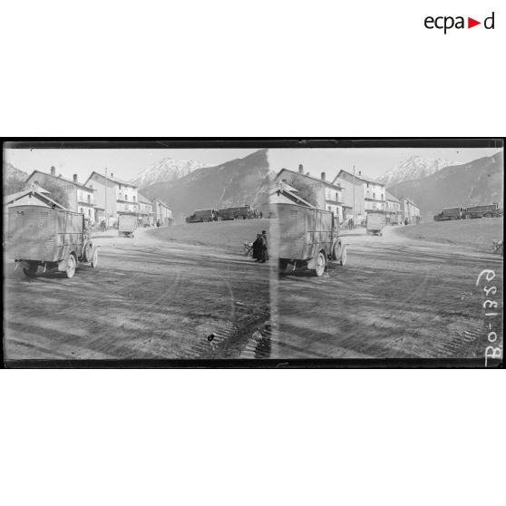 Briançon. Parc de camions de la 10e armée allant en Italie.