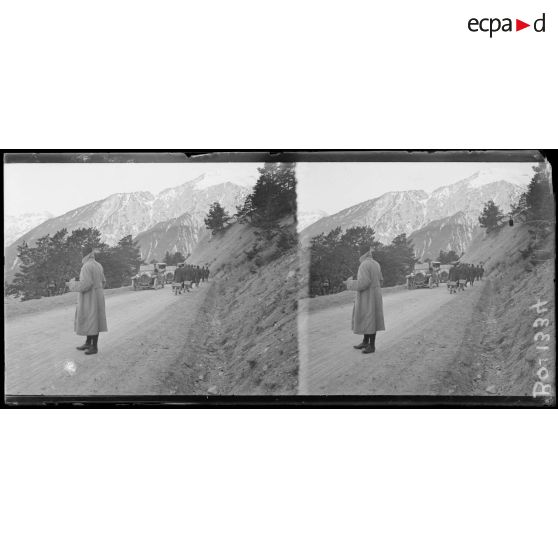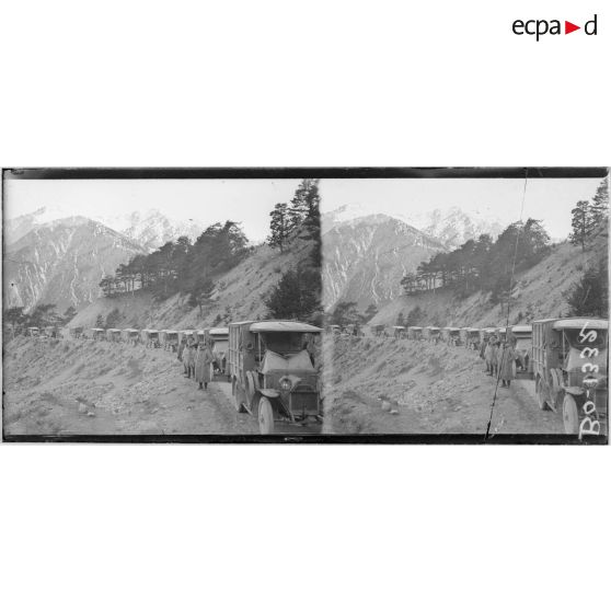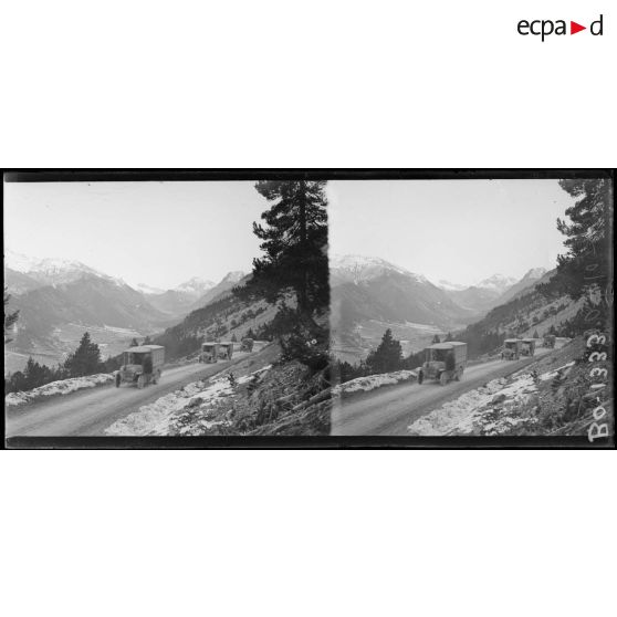 Col du Montgenèvre. Convoi d'autos de la 10e armée passant le col.