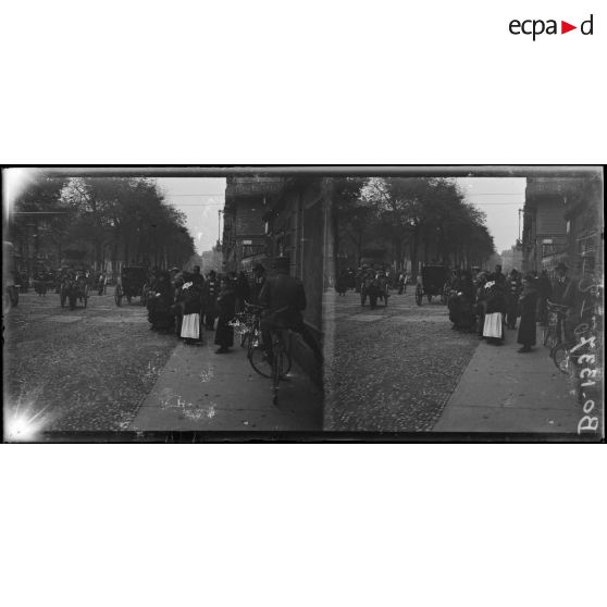 Turin. Curieux attendant les autos de la 10e armée.