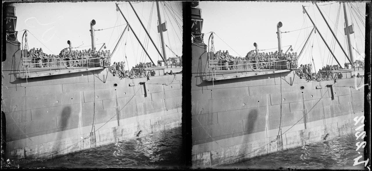 Brest. Arrivée de troupes portugaises par le City of Bénarès, à bord avant le débarquement.