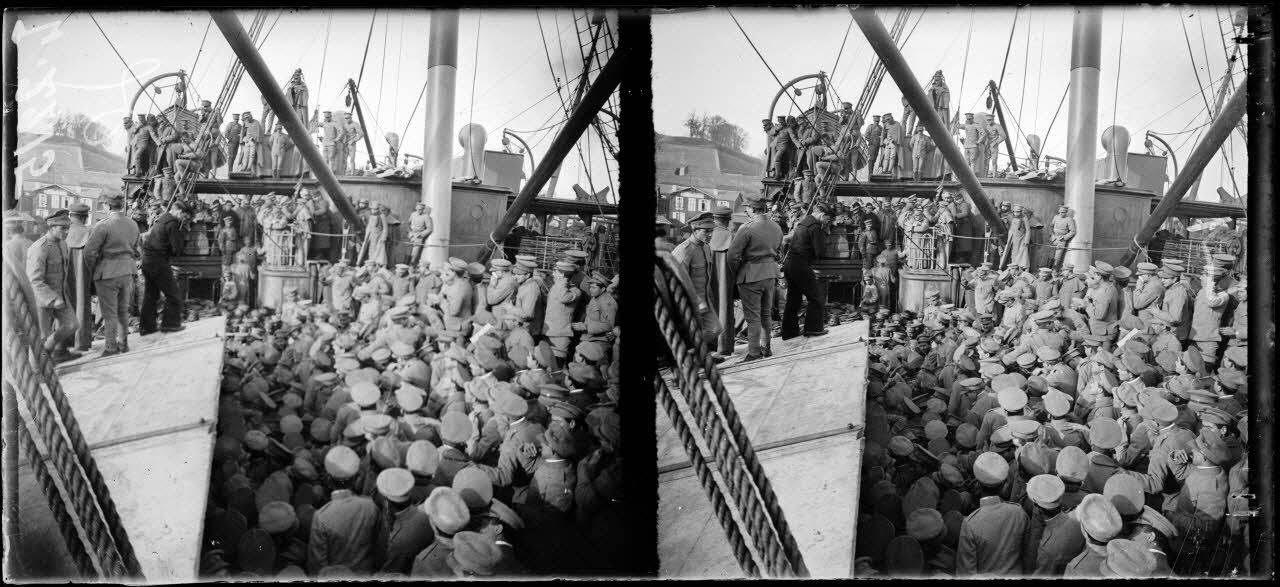 Brest. Arrivée de troupes portugaises par le City of Bénarès, à bord avant le débarquement.
