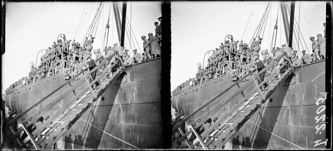 Brest. Arrivée de troupes portugaises par le City of Bénarès, à bord avant le débarquement.